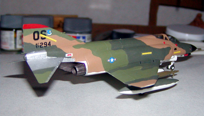 TAK01 さんの F-4E ファントムU であります。 <--- 以下はTAK01さんのコメントです ---> F-4E ファントムU 1/144 アリイ アリイの現用機シリーズは1機300円と手頃で、値段のわりにはなかなか良いキットです。 しかし、やはりエアインテークや主翼、その他もろもろ、各部のすり合わせに泣かされました。 アリイ1/144の素組なので、細部のディティールについて突っ込んでも無意味です。 機首のピトー管のみ伸ばしランナーで作り直しました。やや下がり気味な所はご愛嬌。(^^; それと、GBU-10レーザー誘導爆弾は、LSというメーカーの「エアクラフトウエポンセット2」から調達しました。 塗装はもちろん、米空軍のベトナム迷彩です。いつもの水性ホビーカラーで全て筆塗りです。 今回はカラーが多く、迷彩の塗り分けにてこずりました。 こっちを塗ってはあっちがはみ出し、あっちを修正してはこっちが剥がれ、 塗装面は終止ベタベタ、作業中くっ付いた埃やゴミを取ろうと引掻いてはまた剥がれ、 修正に次ぐ修正でもう泣きそうでした。 しかし、仕上げにつや消しクリアーを吹けば嘘のように落ち着きました。 結局、今回の迷彩塗装は自分で言うのもなんですが大成功の大満足です♪ 塗装が上手くいった分、デカールが色あせ気味なのが非常に残念です。 P.S. 水性ホビーカラー。やっぱりガンプラにはお薦めできないかもです。 |